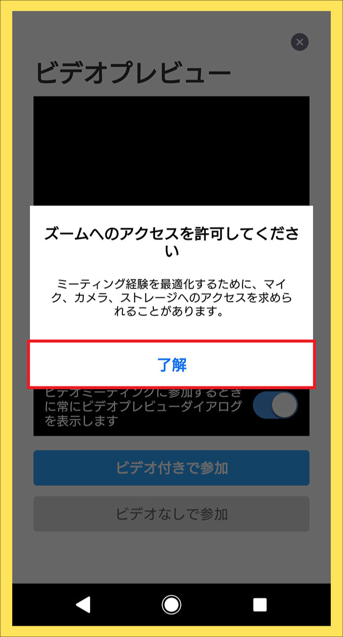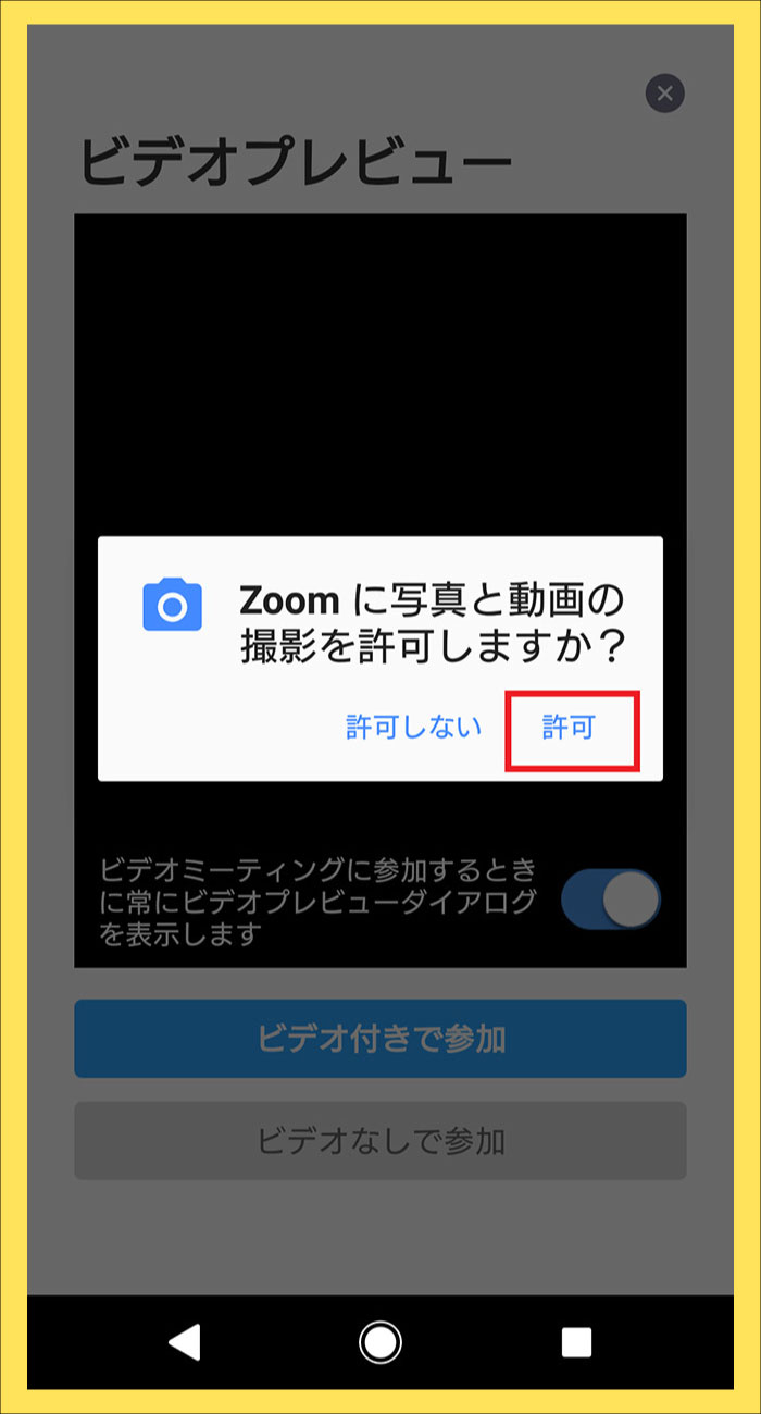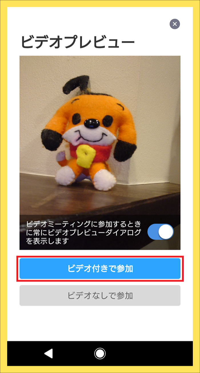 ⑤ 「ビデオ付きで参加」をタップしてください。
