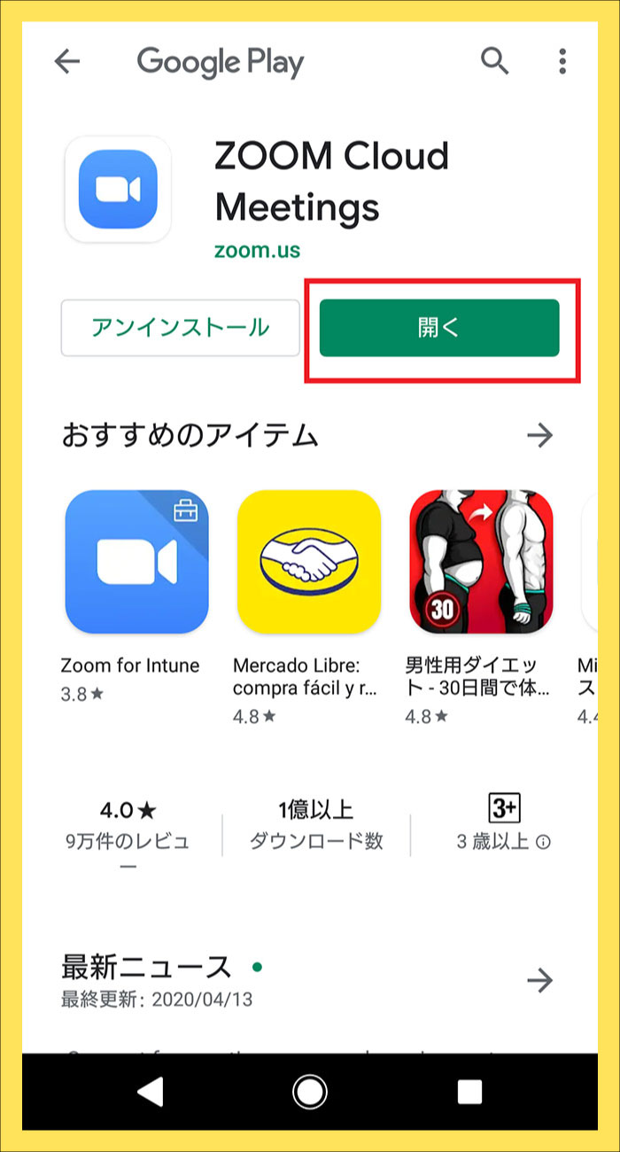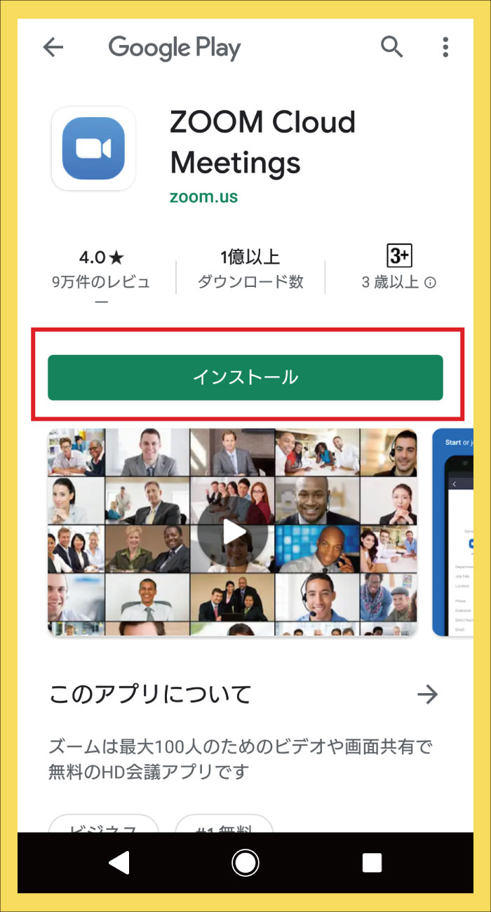 ①Android・・・「Google Play」より「ZOOM」と検索し